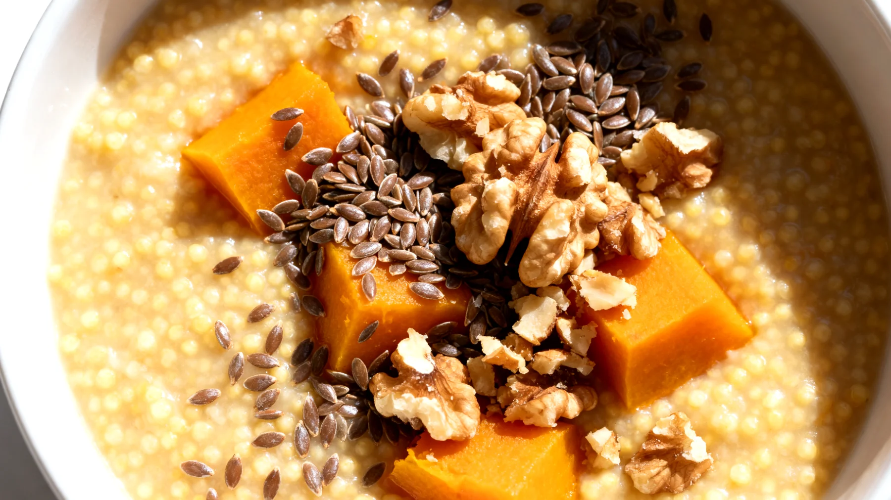 Im Sommer kann der Brei auch lauwarm oder gekühlt als Bowl serviert werden, garniert mit frischen Beeren für zusätzliche Antioxidantien. Der Kürbis lässt sich problemlos durch Süßkartoffel ersetzen, die ein ähnliches Beta-Carotin-Profil aufweist.
