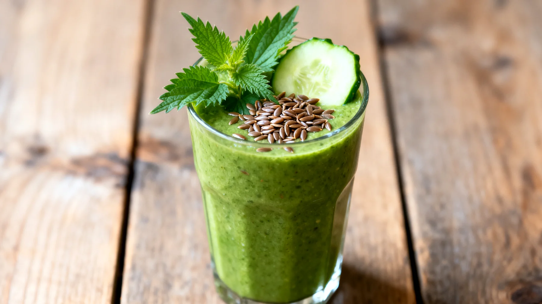 Die Gurke erscheint bescheiden neben der kraftvollen Brennnessel, doch sie erfüllt eine wichtige Funktion in diesem Smoothie. Mit einem Wassergehalt von etwa 95 Prozent trägt sie zur Rehydrierung bei und versorgt den Körper mit Flüssigkeit und Mineralien wie Kalium und Magnesium. Der milde, erfrischende Geschmack der Gurke macht den Smoothie zudem bekömmlicher und sorgt dafür, dass die herbe Note der Brennnessel angenehm abgemildert wird.
